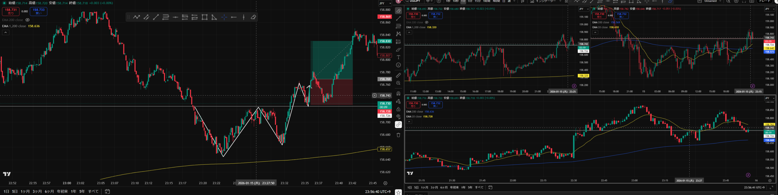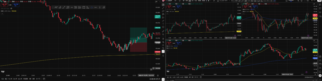 3画面表示足→ 左↑5分足 右↑15分足