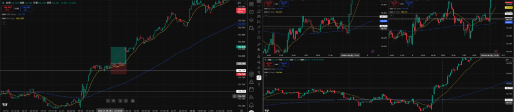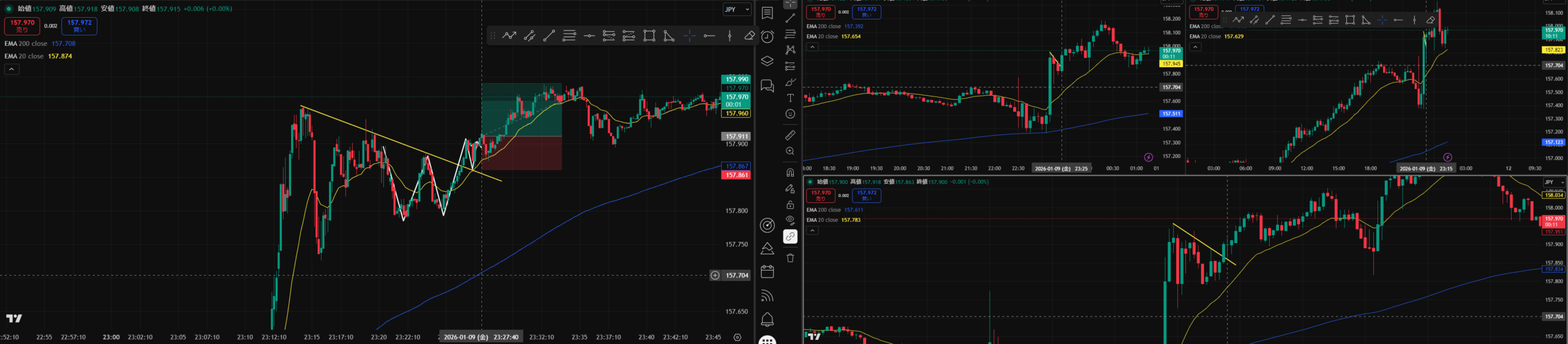 3画面表示足→ 左↑5分足 右↑15分足 ↓1分足